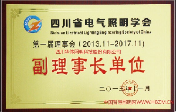證書介紹 四川華體照明榮獲四川省電器照明學(xué)會第一屆理事會副理事長單位(2013\11-2017\11)