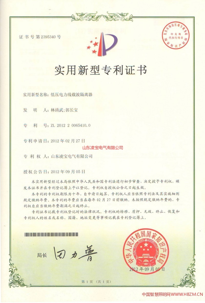 » 實用新型專利證書