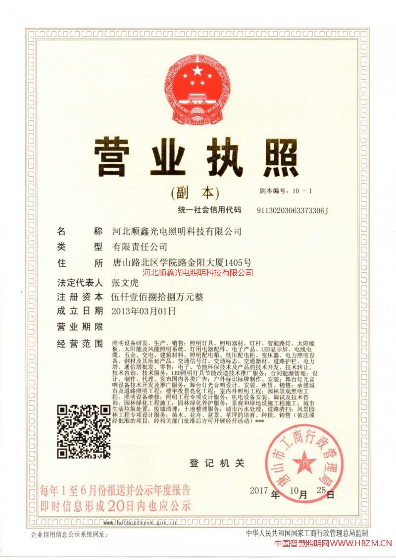 榮譽(yù)資質(zhì) 河北順鑫光電照明科技有限公司營(yíng)業(yè)執(zhí)照