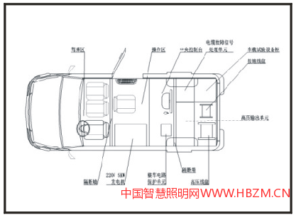 車載電纜故障測試系統(tǒng)車選用國4排放的9座依維柯高頂汽車進(jìn)行改裝,它不同于其他車輛改裝的試驗車,具有國家相關(guān)改裝資質(zhì)的車輛廠改裝,改裝后的電纜故障測試車具備更高的穩(wěn)定性和安全性,具有掛牌的合格證書。車載電纜故障測試系統(tǒng)車主要由車輛平臺、車載設(shè)備、輔助系統(tǒng)組成。