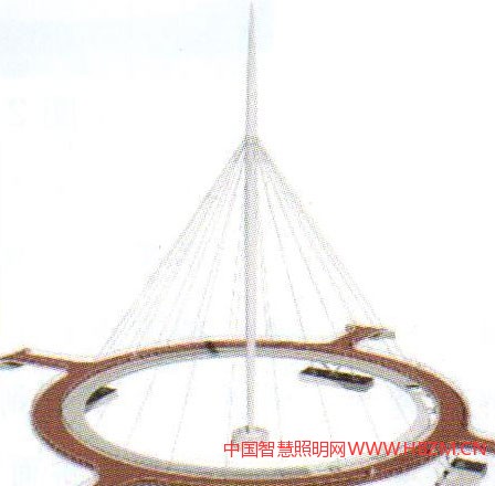 這個(gè)直徑72米的圓環(huán)自行車(chē)交通天橋位于荷蘭埃因霍溫。其現(xiàn)代的設(shè)計(jì),令人印象深刻的塔高,輕薄的體量和耀眼的燈光,如同飛蝶般,成為城市中讓人振奮的交通新地標(biāo)(圖2、圖3)。其位于城市的門(mén)戶(hù),斜拉式的橋梁設(shè)計(jì)為騎行者和行人提供了一個(gè)令人興奮的交叉點(diǎn)。這里曾經(jīng)有一個(gè)平交路口,但是附近房地產(chǎn)項(xiàng)目的發(fā)展導(dǎo)致原有道路不能滿(mǎn)足交通需求,而地下的自行車(chē)交通道路和迂回的自行車(chē)線路都是政府不希望要的方案,最后,荷蘭的橋梁專(zhuān)家ipv代爾夫特用一個(gè)漂亮的圓環(huán)斜拉橋方案,滿(mǎn)足了所有要求。