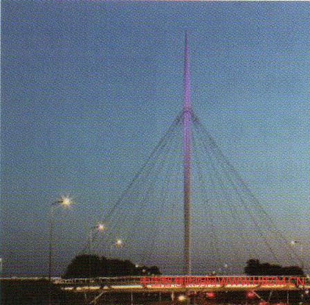 該城市的風(fēng)離譜燈光公司為橋量身設(shè)計(jì)夜晚照明效果,將其打造成為壯觀的“城市之光”。 其中一條光帶分布在路面的下方內(nèi)側(cè),形成強(qiáng)烈的環(huán)帶照明效果(圖1 2)。它的主轉(zhuǎn)是可以避免的。落實(shí)到位后不久吊架,電纜開(kāi)始明顯振動(dòng),像這些由風(fēng)引起的振動(dòng)預(yù)測(cè)幾乎是不可能的。由結(jié)構(gòu)專(zhuān)家經(jīng)過(guò)廣泛的研究,兩種類(lèi)型的阻尼器(高頻和低頻)連接到電纜,解決了振動(dòng)問(wèn)題。(圖6、圖7、圖8)