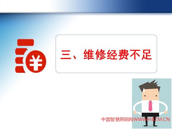 另外針對(duì)當(dāng)前照明行業(yè)普遍存在的設(shè)施安全問題、管理體制問題以及路燈維護(hù)經(jīng)費(fèi)問題,張教授進(jìn)行了總結(jié)并提出要對(duì)癥下藥、主動(dòng)作為。