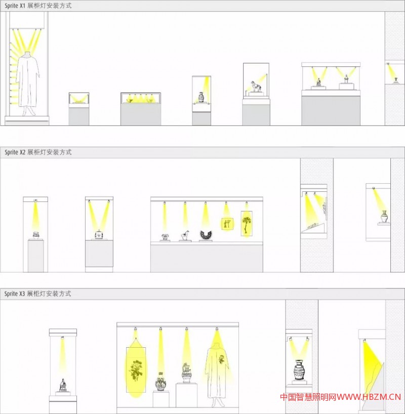 展柜內(nèi)部空間狹小,燈光角度,位置更需精心布置,突出重點(diǎn),精彩畢現(xiàn)。