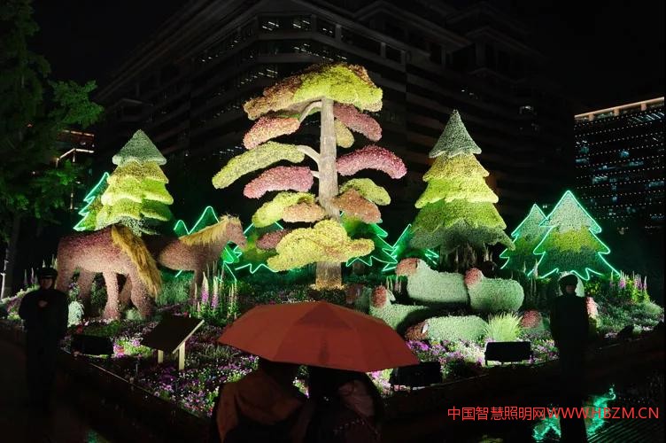 △永安里“一帶一路”主題花壇與秀水街燈光相呼應(yīng)。
