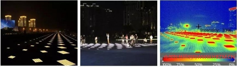 城市廣場(chǎng)已成為人們工作之余休閑的重要場(chǎng)所,某知名中心廣場(chǎng)地面裝飾燈具原采用暖色溫的鈉燈地板燈看上去特別溫馨,隨著城市景觀照明改造節(jié)奏的加快,該中心廣場(chǎng)的地面照明全部換成了高效節(jié)能的LED地磚燈,設(shè)計(jì)者本意是想體現(xiàn)LED的高亮度而選用了高亮度及6000K相關(guān)色溫(CCT)的LED光源,造成圖3地板燈亮度過高的結(jié)果,現(xiàn)場(chǎng)測(cè)量其表面照度為24.86lx,當(dāng)人近距離置身該區(qū)域時(shí)明顯感覺眩光明顯,特別是對(duì)長(zhǎng)時(shí)間處于高色溫和高亮度趴在地面玩耍的小孩來講,對(duì)其眼睛具有相應(yīng)的影響與傷害。無疑該中心廣場(chǎng)地面裝飾燈具需要從色溫及亮度方面進(jìn)行整改,采用暖色發(fā)光地磚具有更好的效果。照明作為城市夜景的一種表達(dá)方式,應(yīng)在方案設(shè)計(jì)、建設(shè)和應(yīng)用中與城市特色同步,讓人們?cè)谛蓍e時(shí)具有更多的沉浸式體驗(yàn)。