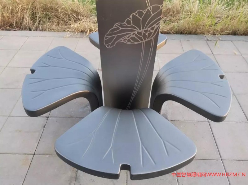 對此,華體科技根據(jù)雄安新區(qū)的特色在細節(jié)上創(chuàng)新設(shè)計了生態(tài)雄安之城市家具座椅及底座。該款座椅提取了白洋淀的荷葉為元素,選材為高強度耐候性玻鋼非金屬材質(zhì),結(jié)構(gòu)上可實現(xiàn)靈活拆卸;細看之下,我們可以發(fā)現(xiàn)該座椅巧妙地利用荷葉紋路作為導(dǎo)水槽,平滑弧度可使其在雨后不留水漬,功能性和觀賞性結(jié)合得非常緊密。底座上的荷花紋飾采用不繡鋼蝕刻技術(shù),栩栩如生。自然元素和弧線的使用賦予了嚴肅的、功能性的路燈一抹靈動,讓每日行走在鋼筋水泥城市森林中的都市人也能感受到寄情山水樂趣。當日頭西落,“蘆花”亮起,那份美與智慧交織的安全感讓雄安化身為烏托邦式的未來智慧城市。