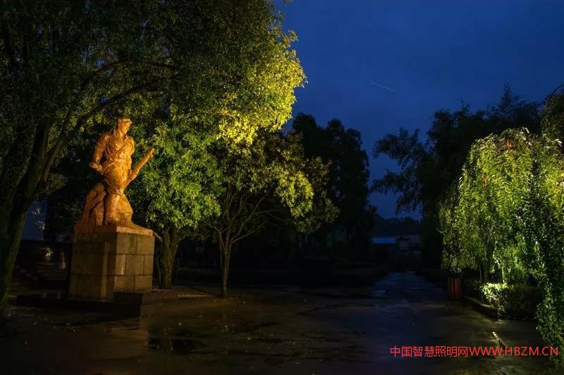 燈光設計基于對紅色文化的表達,提升建筑在夜間的文化形象,并對參觀人群起到很好的引導與強調作用。在設計上將燈光與建筑完美融合,表現(xiàn)光與影的對比,塑造明顯的明暗層次關系,真實表現(xiàn)建筑的材質感、立體感。
