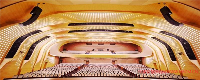 音樂(lè)廳與大會(huì)議廳類似,但由于飄帶的加入,使這個(gè)音樂(lè)“洞穴”增添了更加奇趣與神秘的效果。這里功能燈發(fā)揮了更大的作用,在舞臺(tái)正上方的功能燈在演出時(shí)也會(huì)為場(chǎng)上提供必要的環(huán)境光,以增加氣氛。