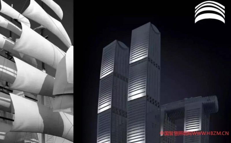 燈光的動(dòng)態(tài)也是模擬帆在不同狀態(tài)下的形態(tài)。我們認(rèn)為城市地標(biāo)的燈光應(yīng)該植根于城市本身的人文地理,以更加優(yōu)雅富有內(nèi)涵的方式反映出符合地標(biāo)氣質(zhì)的城市燈光。