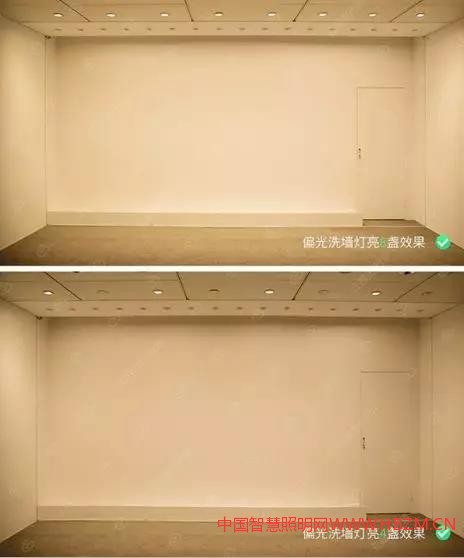 不同的燈具數(shù)量也會形成不同的效果,如下面兩圖中,上面的是八盞燈的照明效果,下面的則是四盞燈的照明效果,使用八盞燈的墻面均勻度會高點(diǎn),整體也會明亮一些,我們可以根據(jù)使用的需要或者想要的效果選擇燈具數(shù)量。