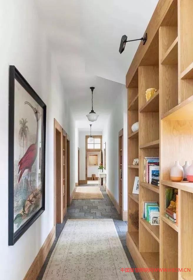 01掛畫, 在走廊盡頭的地方掛上一幅裝飾畫,再用燈光打亮,不僅增強(qiáng)了視覺感,提升了家里的格調(diào)與品位,也能讓走廊不那么單調(diào)死板。