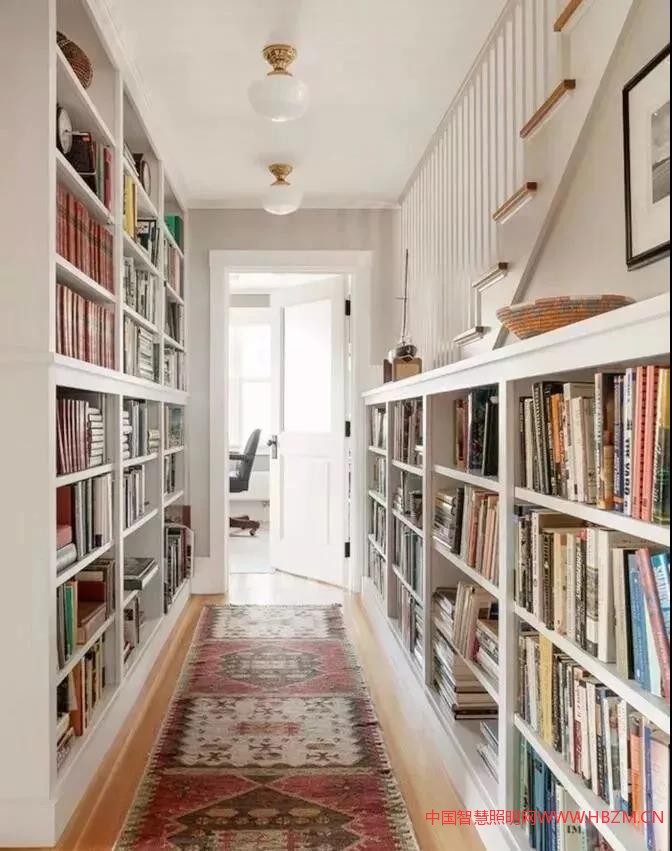 04、迷你書架,如果家里沒有獨(dú)立的書房,就可以在走廊做個(gè)簡單的書架,擺放上自己心愛的書籍,最大化地利用小空間。