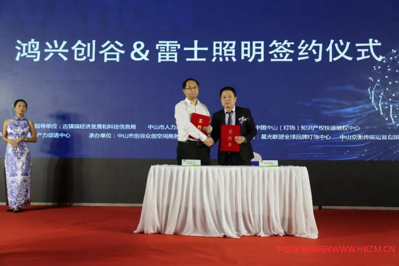 鴻興創(chuàng)谷創(chuàng)始人鄧秋平與雷士家居事業(yè)部總裁徐進(jìn)(左)簽訂戰(zhàn)略合作協(xié)議