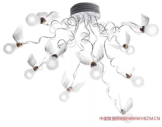 如果天堂上有燈光,會是是什么樣子?我會說IngoMaurer設(shè)計(jì)的Lucellino。即使在天堂,它的美也不會有絲毫失色。潔白的羽毛雙翼,讓光仿佛也可以自由的飛翔。