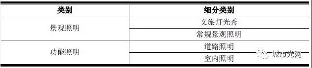 照明工程市場按應(yīng)用范圍、表現(xiàn)形式和建設(shè)目的不同分為景觀照明和功能照明,具體情況如下:
