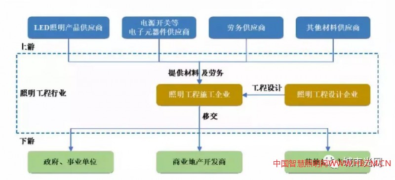 照明工程行業(yè)上下游行業(yè)及關(guān)系示意圖如下: