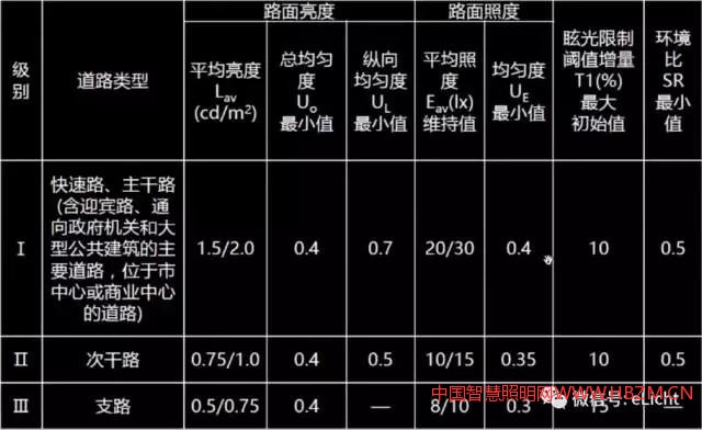 國家規(guī)定的機動車交通道路照明標準值