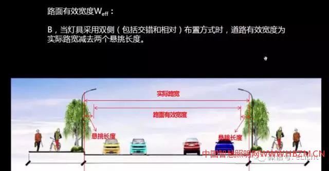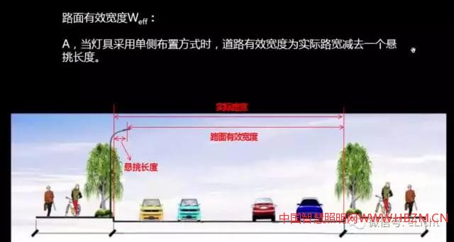 懸挑長度:燈具的光中心至鄰近一側(cè)緣石的水平距離,即燈具伸出或縮進緣石的水平距離。一般不宜超過安裝高度的 1/4,燈具的仰角不宜超過 15°。