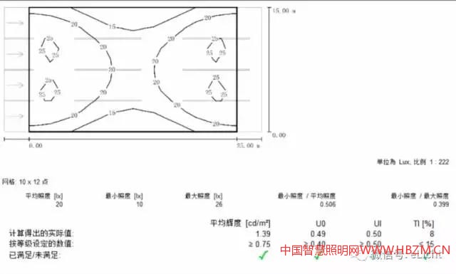 基本情況:次干路,雙向4車道,都為機動車道,寬15米,瀝青路面。采用路燈,雙側(cè)對稱布置。LED路燈80W