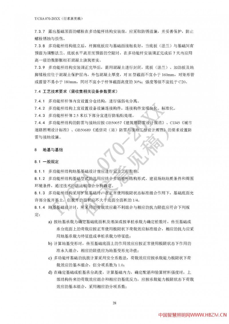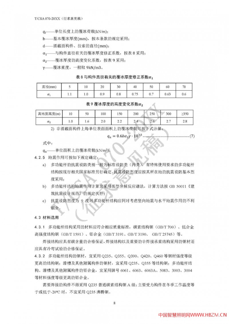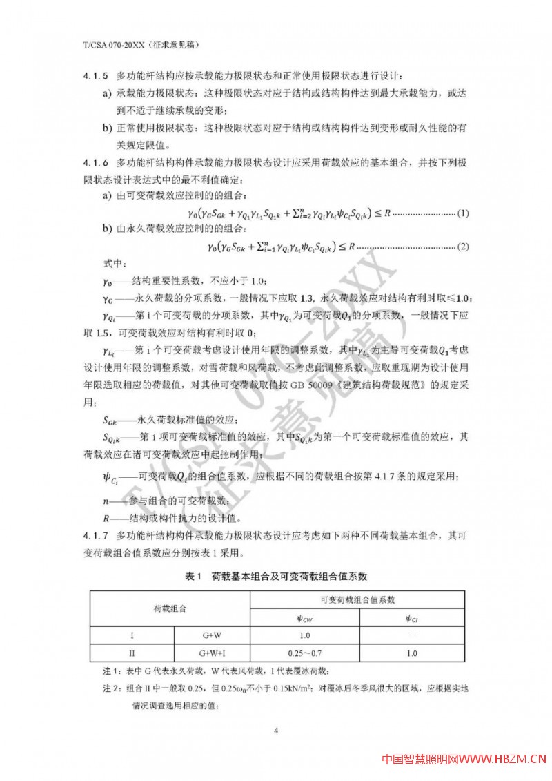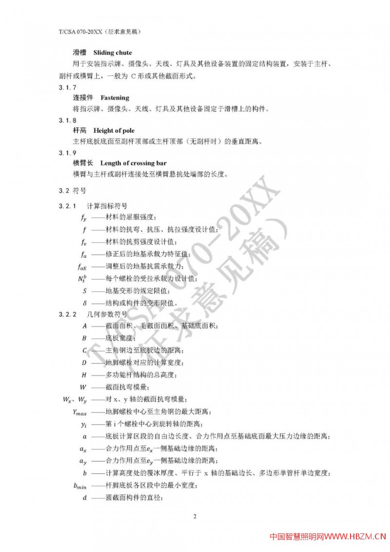 對于多功能桿件,因其加載設(shè)備多,有些桿件(如路燈桿兼做交通F桿)挑臂較長、重量較大、迎風(fēng)面積也較大,結(jié)構(gòu)安全性尤為重要,其設(shè)計(jì)方法也較為專業(yè)、復(fù)雜。為統(tǒng)一多功能桿件設(shè)計(jì)和驗(yàn)算方法,國家半導(dǎo)體照明工程研發(fā)及產(chǎn)業(yè)聯(lián)盟(CSA)專門草擬了《多功能桿結(jié)構(gòu)設(shè)計(jì)規(guī)范》(T/CSA 070),并于2020年底面向行業(yè)廣泛征求意見。