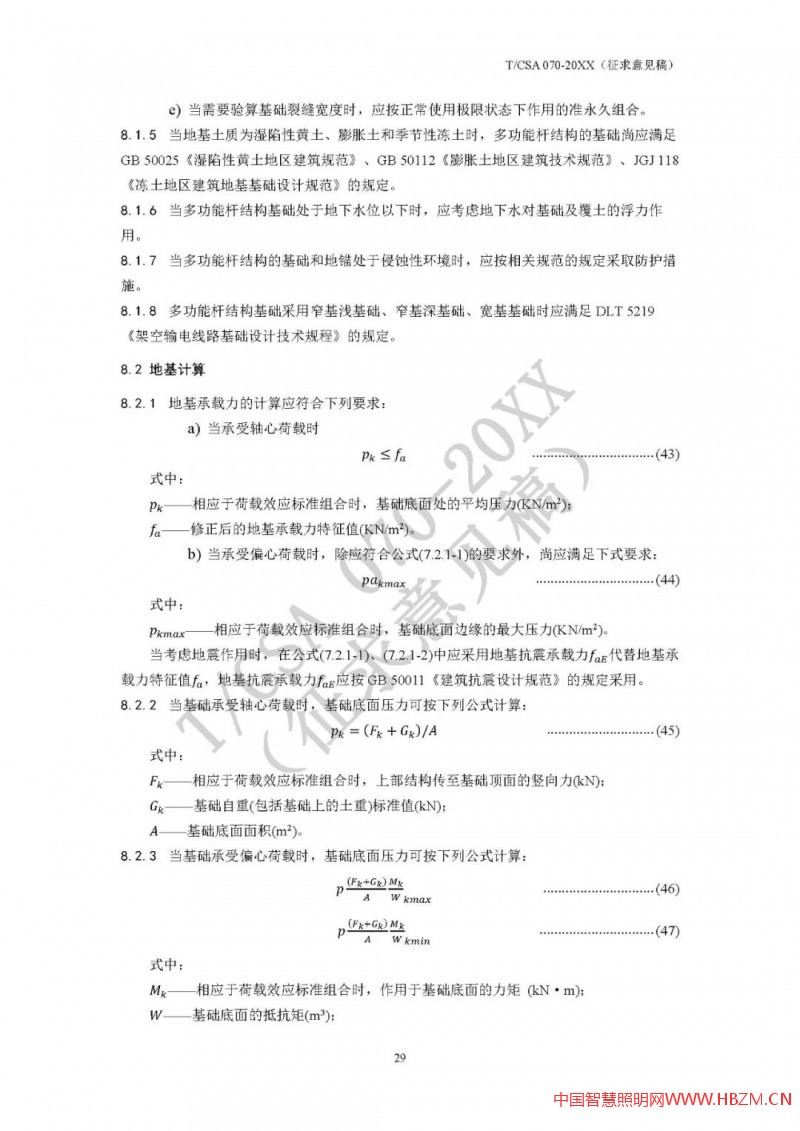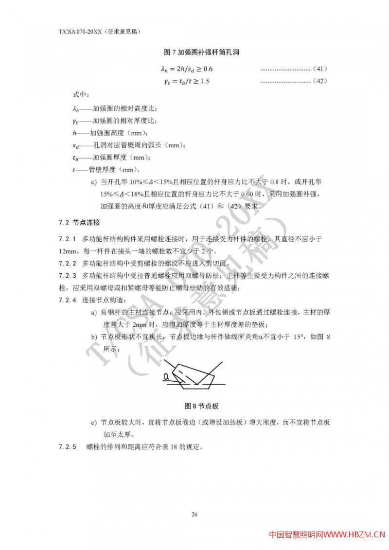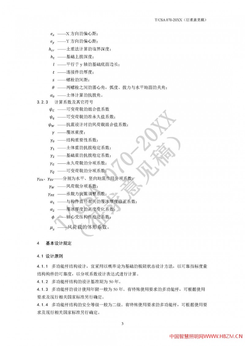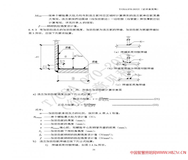 由于結(jié)構(gòu)計(jì)算的復(fù)雜性,為方便大家更好地掌握設(shè)計(jì)計(jì)算,筆者在意見中提出要在附錄中增加算例:以典型多功能桿結(jié)構(gòu)為例(一般2-3種),進(jìn)行從桿件強(qiáng)度到法蘭到基礎(chǔ)的全套設(shè)計(jì)計(jì)算,方便標(biāo)準(zhǔn)使用者整體把握計(jì)算方法(在標(biāo)準(zhǔn)中的計(jì)算方法,往往是針對某一部件的,通過附錄中的算例,可以把握整體計(jì)算方法)。在很多復(fù)雜標(biāo)準(zhǔn)中,算例是較為常見的,如JTG/T D70/2-01-2014 公路隧道照明設(shè)計(jì)細(xì)則,附錄即提供了隧道照明的計(jì)算案例。