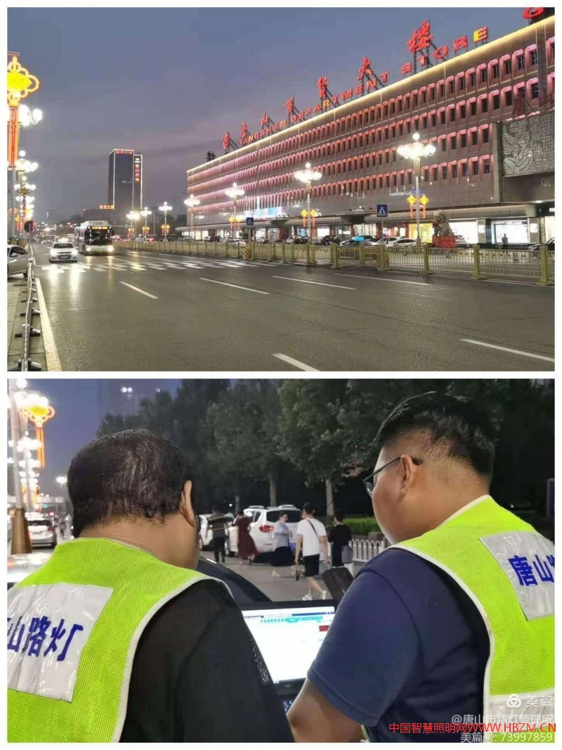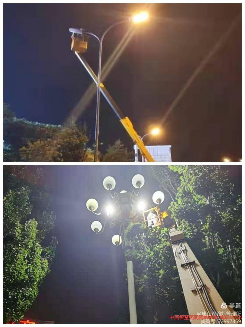 路燈管理所數(shù)字化維護(hù)人員現(xiàn)場(chǎng)調(diào)整路燈監(jiān)控系統(tǒng)。