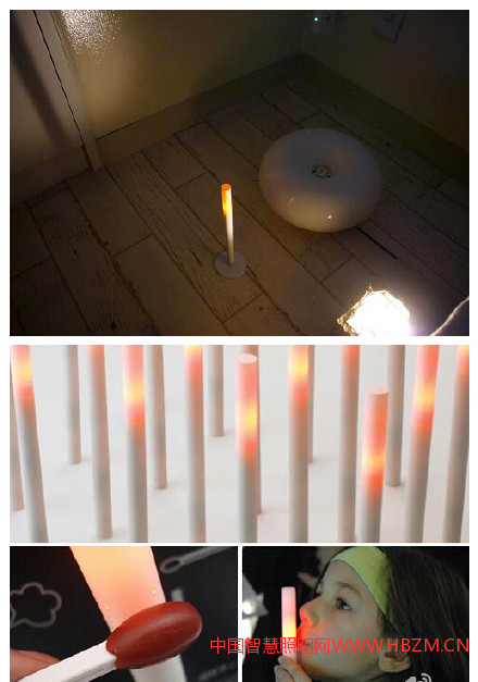 電子蠟燭的光源采用了LED,電源則來自鎳氫充電池。通常充電15小時,可點燈8小時。內(nèi)部藏有非常敏感的電磁感應(yīng)裝置和調(diào)節(jié)光亮的控制器。既可以使用附屬的臺座,把它豎立在餐桌上,也可以將它掛在墻上,作為室內(nèi)間接照明。
