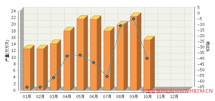 )累計(jì)完成產(chǎn)量175.61億只,同比增長(zhǎng)-41.37%。其中:10月份完成產(chǎn)量15.28億只,同比增長(zhǎng)-36.66%。