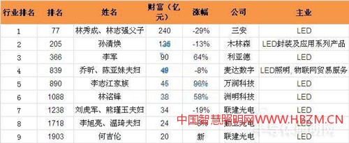 2016年胡潤(rùn)百富榜(LED行業(yè)入榜名單)