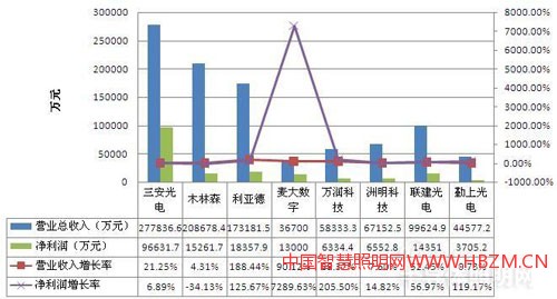 上榜LED企業(yè)2016上半年業(yè)績(jī)情況
