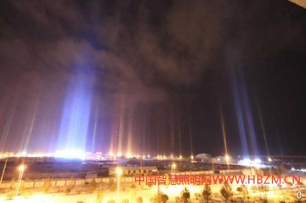 城市照明燈光被反射成一道道光柱,讓人如同置身于"童話小鎮(zhèn)"。