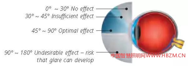 4、舒適度和眩光控制:在視野內(nèi)有過高亮度或過大亮度比時(shí),就會(huì)使人們感到刺眼的眩光。防止眩光的措施主要是限制光源亮度,合理布置光源。如使光源在視線45度范圍以上,形成遮光角或用不透明材料遮擋光源。