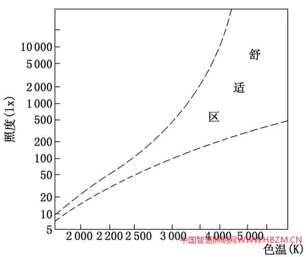 先前的研究和看法認(rèn)為,色溫的選擇和舒適度之間存在下圖所示的關(guān)系: