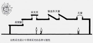 頂部采光指的是光線來自于房間上部的采光方式,包括各種形式的天頂采光和高側(cè)窗采光,作為自然采光設(shè)計中最為有效。同時也是最為廣泛運用的一種采光模式,它不但能提供均勻的照度。在大面積光線入射的情況下可以降低明暗對比。減弱陰影;而且可以避免在墻壁上開設(shè)窗戶把整個墻面用于展覽。以增加展陳的面積;另外還可以為展品及空間劃分提供靈活多變的照明方式。