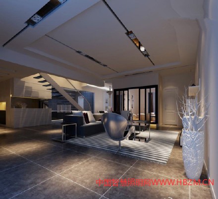 復(fù)式結(jié)構(gòu)使房間顯得寬闊無(wú)比,而“回型”的吊頂更是拉大了房間縱向的距離,簡(jiǎn)單的頂燈設(shè)計(jì)特別,在保證正常照明的情況下節(jié)省了一部分空間。