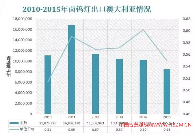 2015年我國出口澳洲的全部照明產品7.24億美元,同比增長14.20%;這其中LED照明產品3.96億,同比增長13.08%,出口額高居出口目的國第10名。