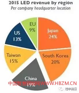 2015年LED市場營收(按地區(qū)細分)