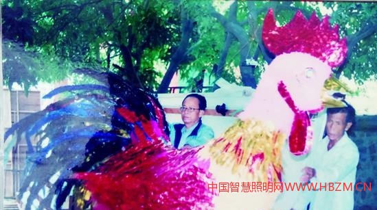這樣的例子還不少,陳宣兆曾做過一盞孔雀開屏的花燈,孔雀開屏色彩斑斕的羽毛,由30余盞燈扎成,竹片固定的孔雀昂著頭,目光炯炯有神,精神抖擻,仿若一只奮起的雄雞。