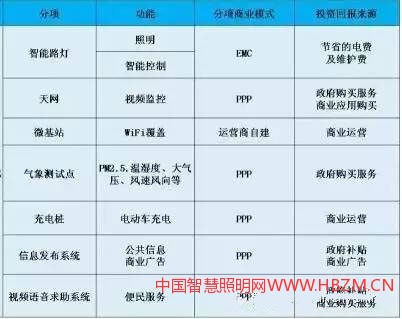 此外,還有若干城市通過(guò)智慧路燈實(shí)現(xiàn)智慧安防視頻監(jiān)控、無(wú)線(xiàn)城市WIFI覆蓋、PM2.5智能感知、手機(jī)充電4G基站、智能充電樁、特殊人群監(jiān)控、市政設(shè)施監(jiān)控等功能。