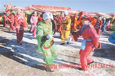 在張北縣德勝村,精彩的民俗表演烘托出濃濃的節(jié)日氣氛。 記者王雪威攝