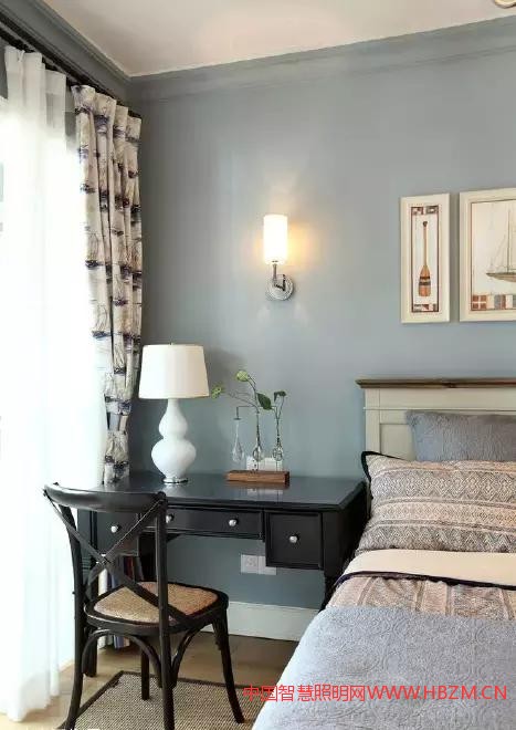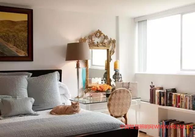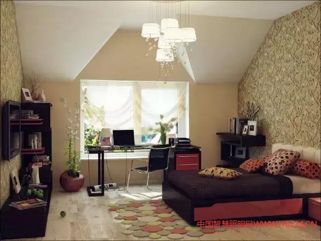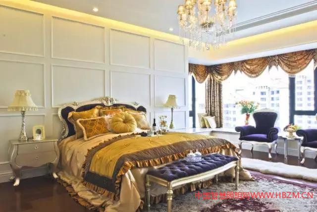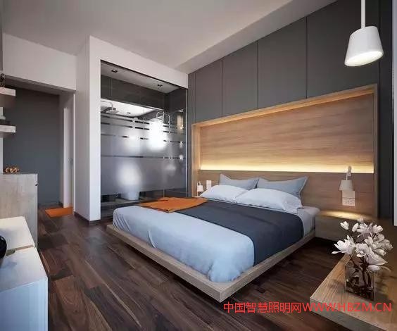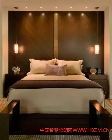 如果房間里大部分家具都是深胡桃木色,同時壁紙也是暗色的,這個時候就極需白色光源的補充,以白光來與臥室環(huán)境適當配合。