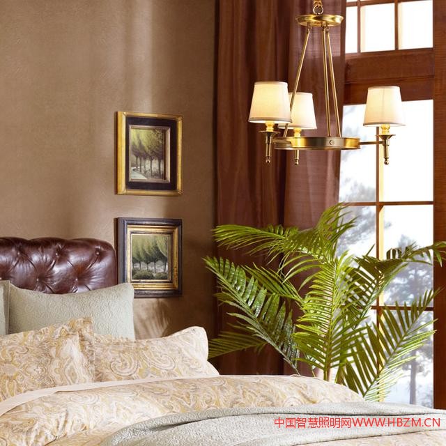 那么在臥室照明的選擇上,就有半直接照明、間接照明以及漫射照明這三種。半直接照明的方式是半透明的材料制成的燈罩罩住光源上部,60%~90%以上光線使之集中射向工作面,10%~40%被罩光線又經(jīng)半透明燈罩?jǐn)U散而向上漫射,其光線比較柔和。臥室中采用吊燈來(lái)做半直接照明,無(wú)形中增加了居室的高度。