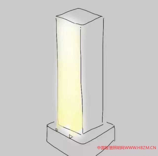 圖:在建筑物的下面放置投光燈,建筑物的立面亮起來的時候就會顯出沒亮的那一面,明暗交錯,還原建筑物的光影立體感。(手繪:梁賀Lego)