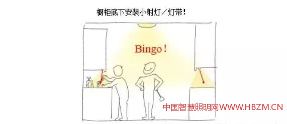 家居活動(dòng)最多的一個(gè)區(qū)域,但是卻是家居照明最容易忽視的一個(gè)部分。除了基本的直接照明,建議在工作臺(tái)(洗碗池和灶臺(tái))加上小射燈或者燈帶,滿足洗菜、切菜、烹飪時(shí)的照明需求。