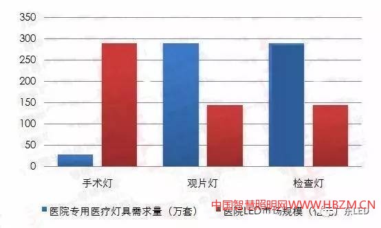 醫(yī)療應用:目前,LED在醫(yī)療方面的應用主要分為醫(yī)院光環(huán)境照明和醫(yī)療專用器械設備兩類。據(jù)中國衛(wèi)計委統(tǒng)計,截至2016年10月底,全國醫(yī)療衛(wèi)生機構(gòu)數(shù)達99.0萬個,其中醫(yī)院2.9萬個(公立醫(yī)院12786個,民營醫(yī)院15798個),同比增長6%。據(jù)測算,2016年我國醫(yī)院醫(yī)療專用設備應用(僅計算手術燈、觀片燈及檢查燈)的燈具需求量約600萬套,形成的市場需求規(guī)模約580億元。