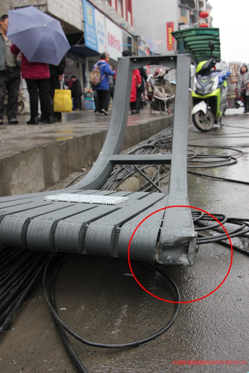 (砸中人的路燈桿從此處脫落)