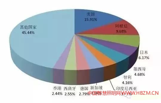 據(jù)統(tǒng)計,2017年前四個月,中國LED路燈的出口總額達(dá)到了4852萬美元,同比增長了27.17%,排名第十(除去未列明產(chǎn)品)。前4個月,美國以772萬美元的進(jìn)口額位居第一,占市場15.91%,其次是阿根廷、日本、墨西哥和智利,進(jìn)口LED路燈前五名的國家占比只有40%。