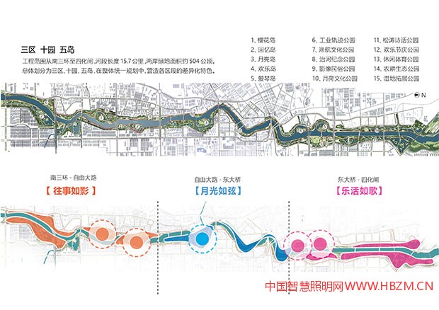 長春伊通河改造就采用了“天人合一”理念,首先,建筑景觀設計師完成河道景觀設計;水利設計師相應完成水利設施部分;橋梁設計師完成橋梁設計任務;照明設計師完成景觀照明設計任務;所有設計單位的成果一起匯總,協(xié)調(diào)統(tǒng)一。