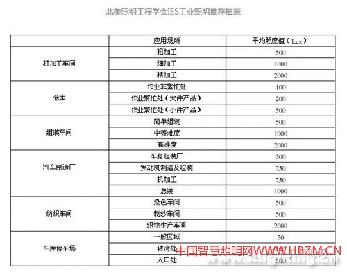 1、從北照明工程學(xué)會IES工業(yè)照明推薦值表(見表)中找到應(yīng)用場所的照度值A(chǔ)